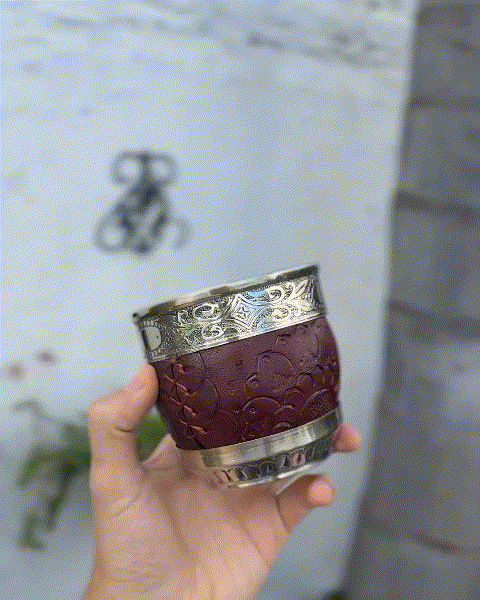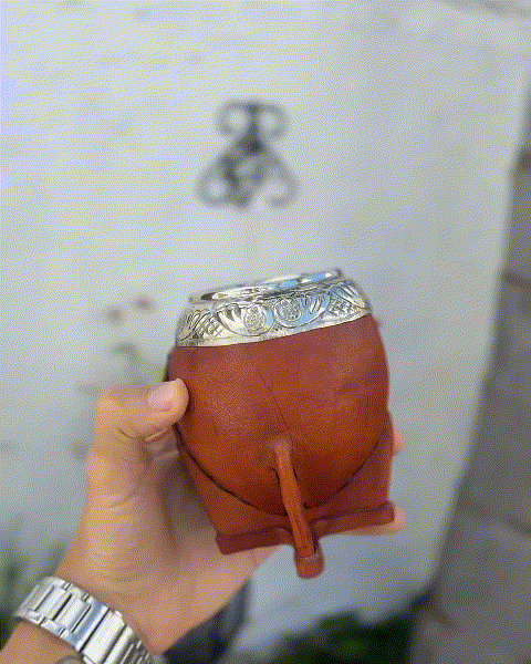Mate Imperial ROMA EXCLUSIVO, Virola Alpaca, Cuero TALLADO - Modelo 23