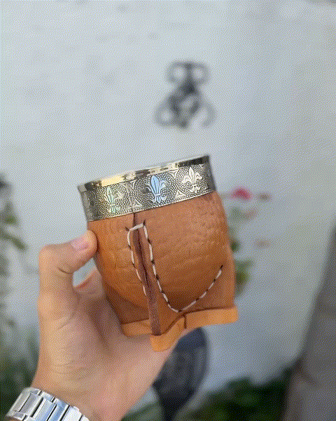 Mate Imperial PREMIUM, Virola Alpaca, Cuero LABRADO - Modelo 9