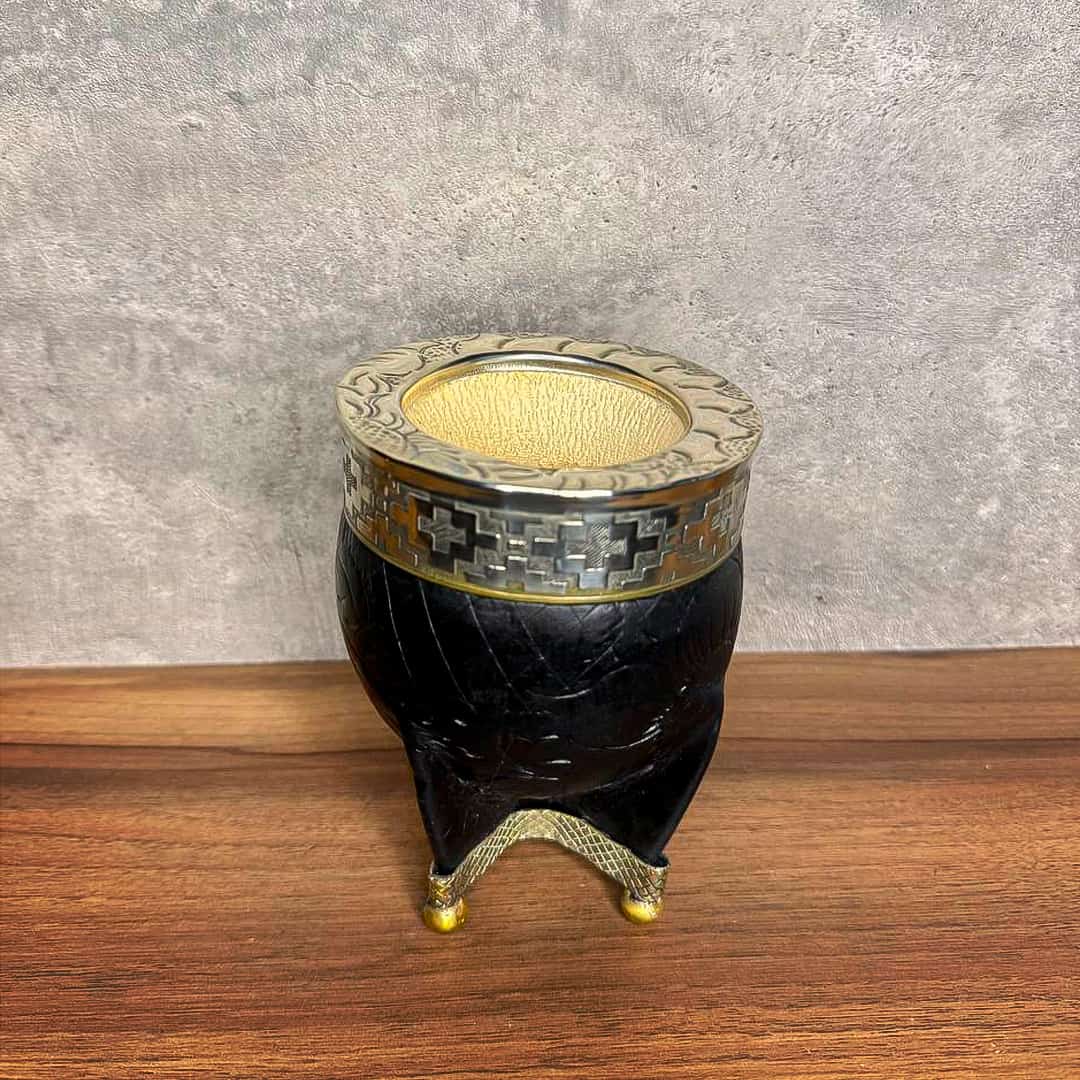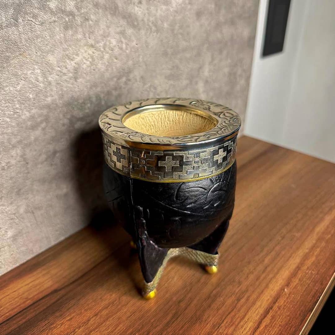 Mate Imperial PREMIUM, Virola Alpaca, Cuero TALLADO, Base y Bolitas. - Modelo 1