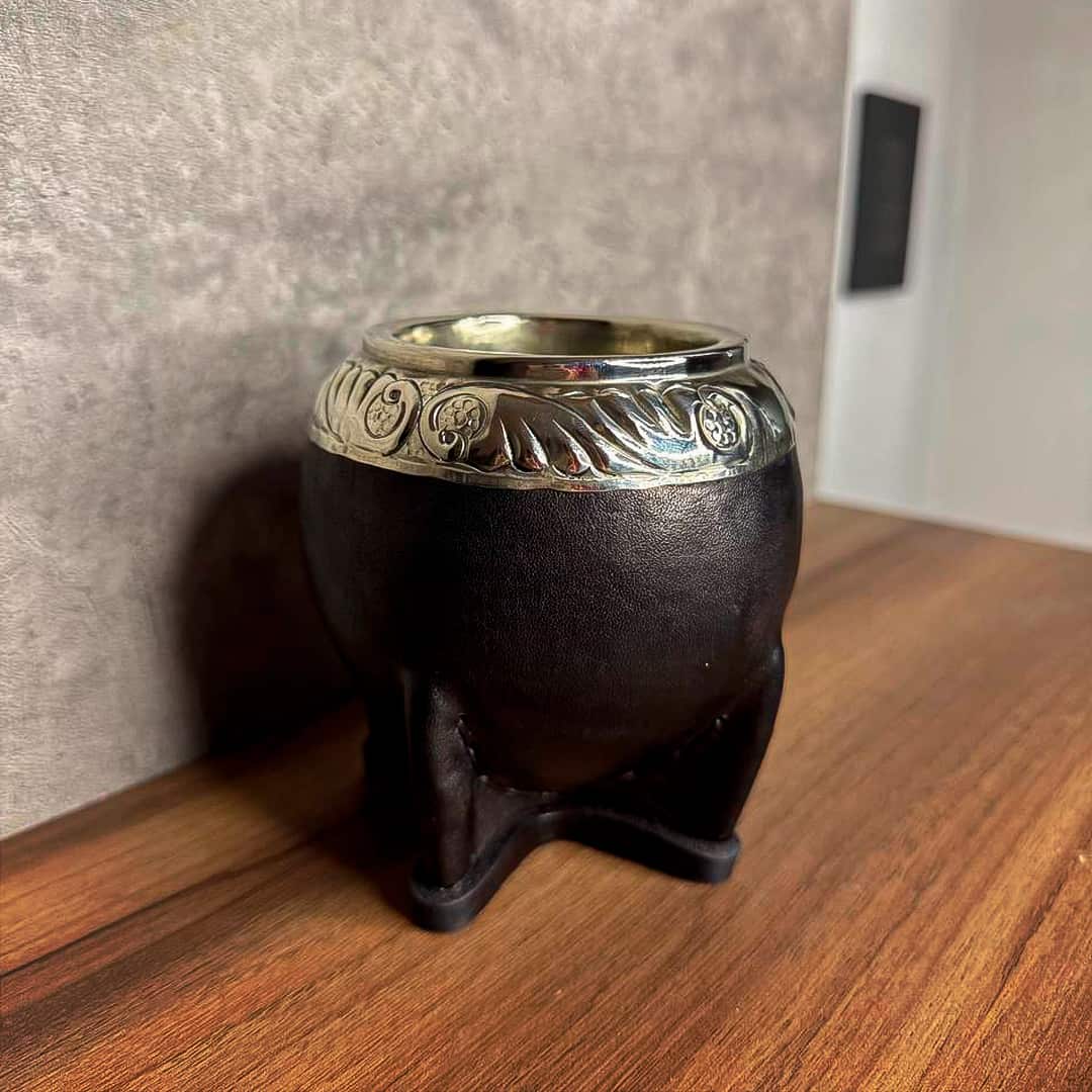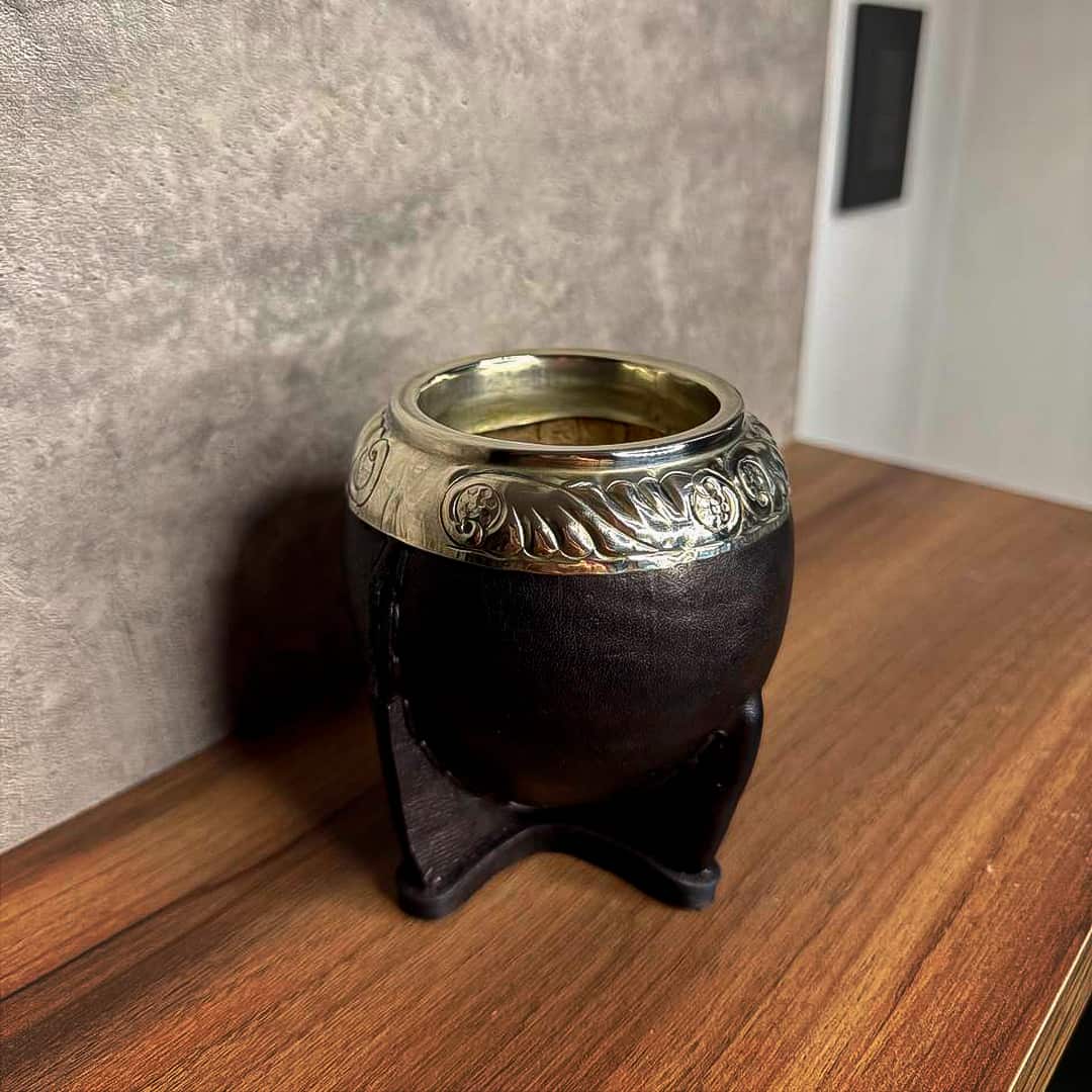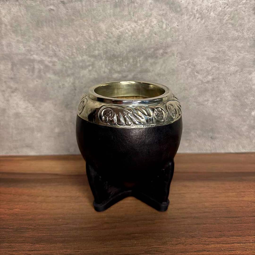 Mate Torpedo EXCLUSIVO, Virola Alpaca cincelada en LACRE, Cuero LISO - Modelo 1