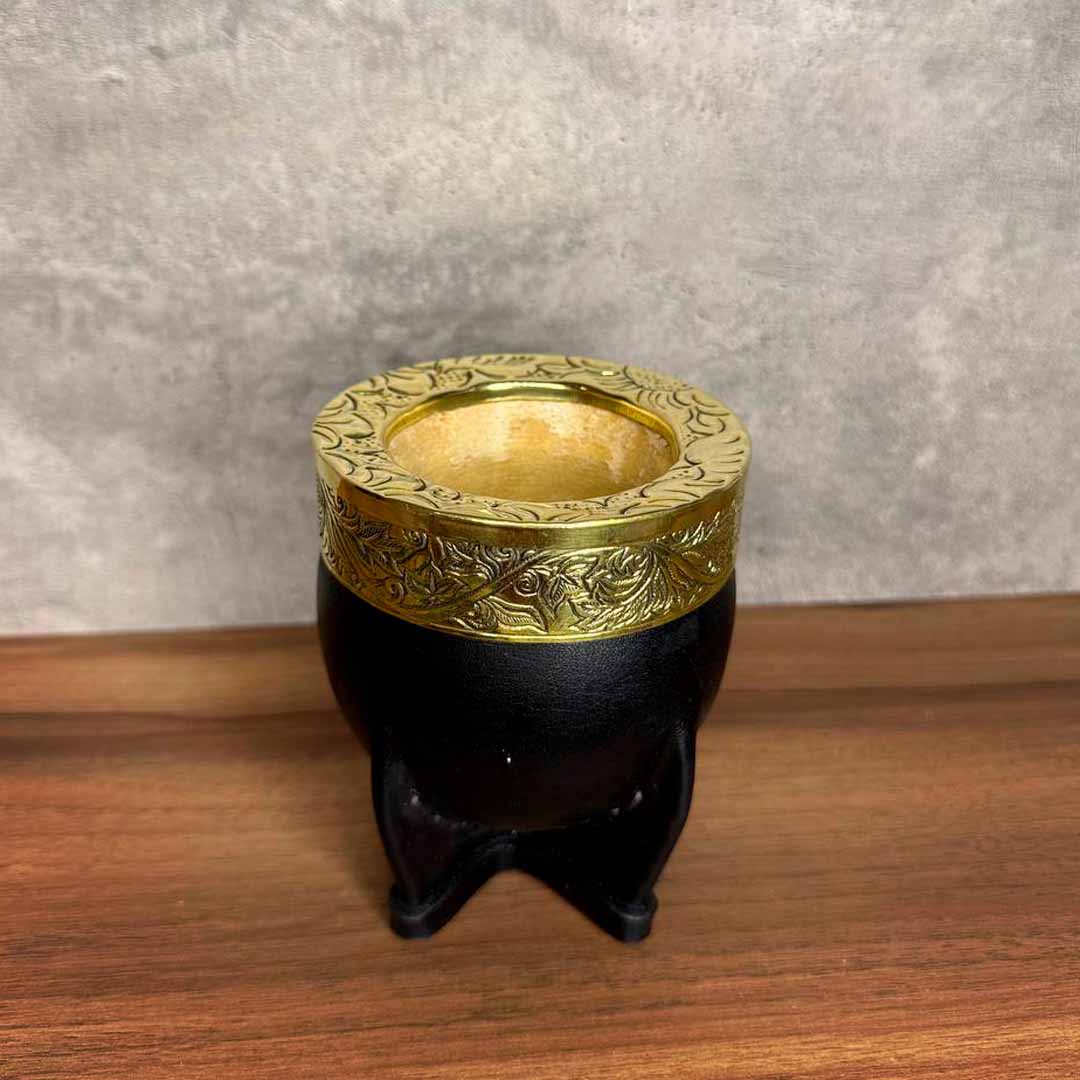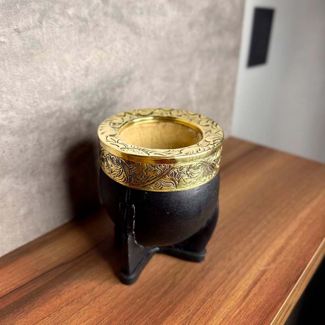 Mate Imperial PREMIUM de Calabaza, Virola bronce CINCELADA, Cuero LISO.