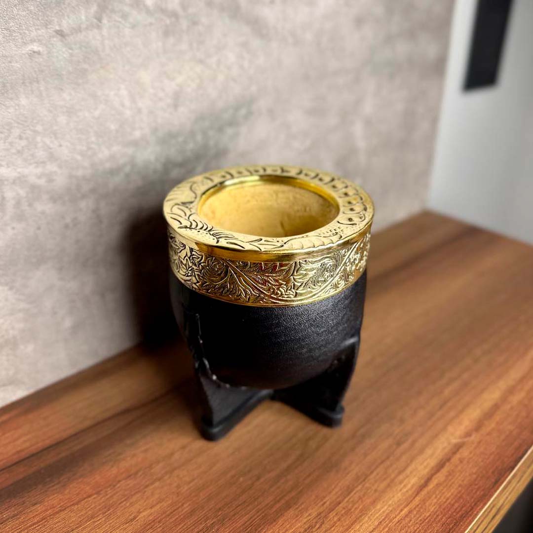 Mate Imperial PREMIUM de Calabaza, Virola bronce CINCELADA, Cuero LISO.