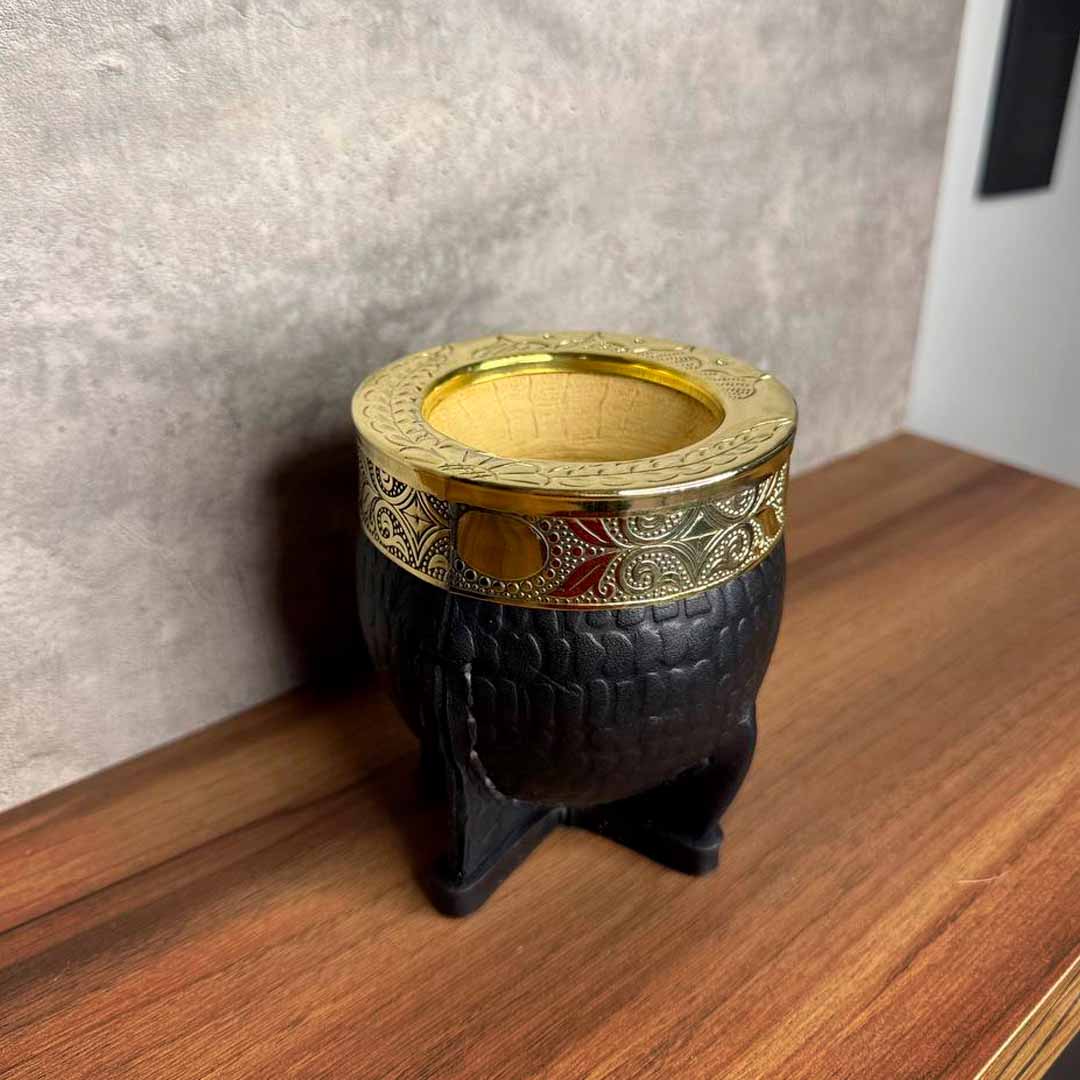 Mate Imperial PREMIUM de Calabaza, Virola bronce CINCELADA, Cuero CROCCO.