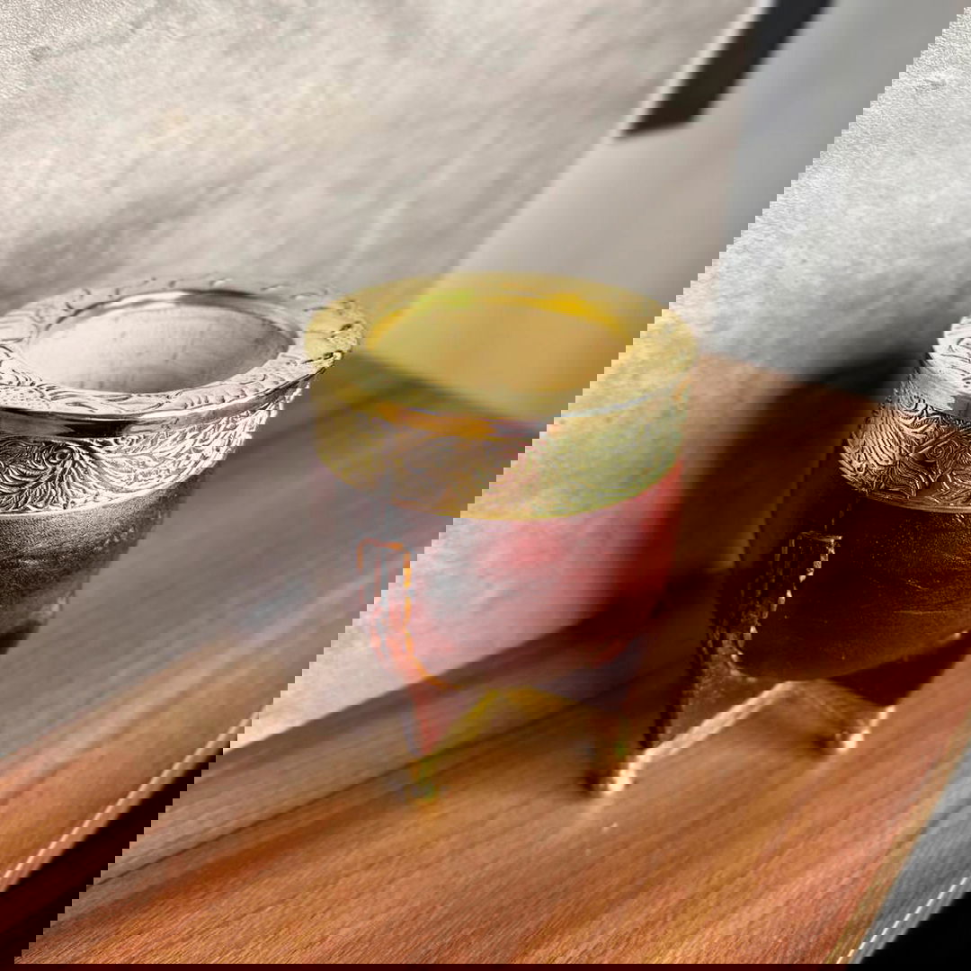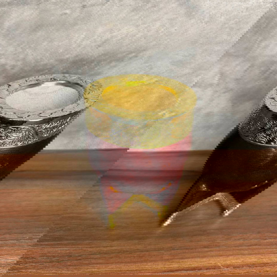 Mate Imperial EXCLUSIVO de Calabaza, Virola Bronce Cincelada, Cuero LISO y Base reforzada Bronce con bolitas en Bronce.