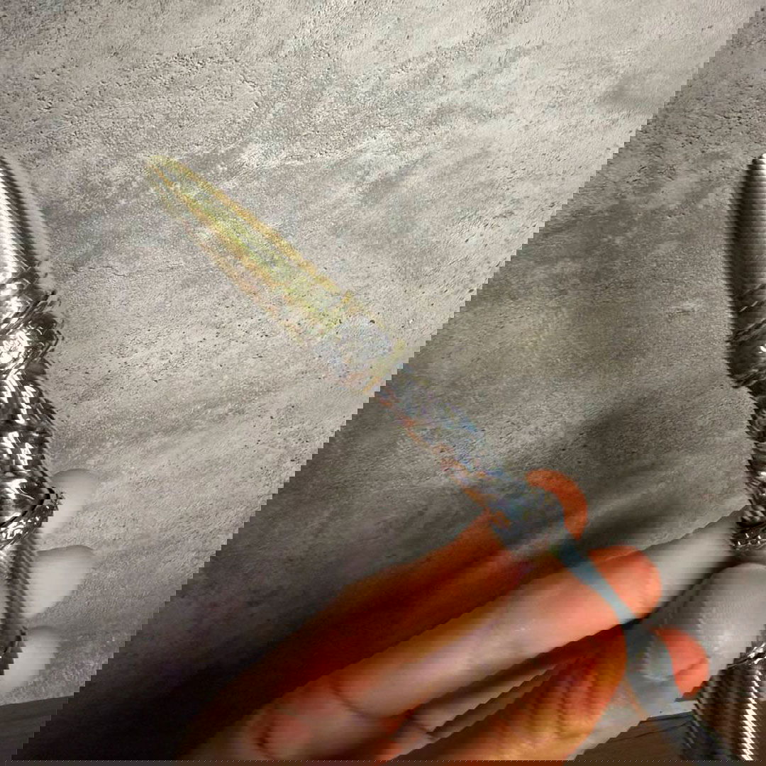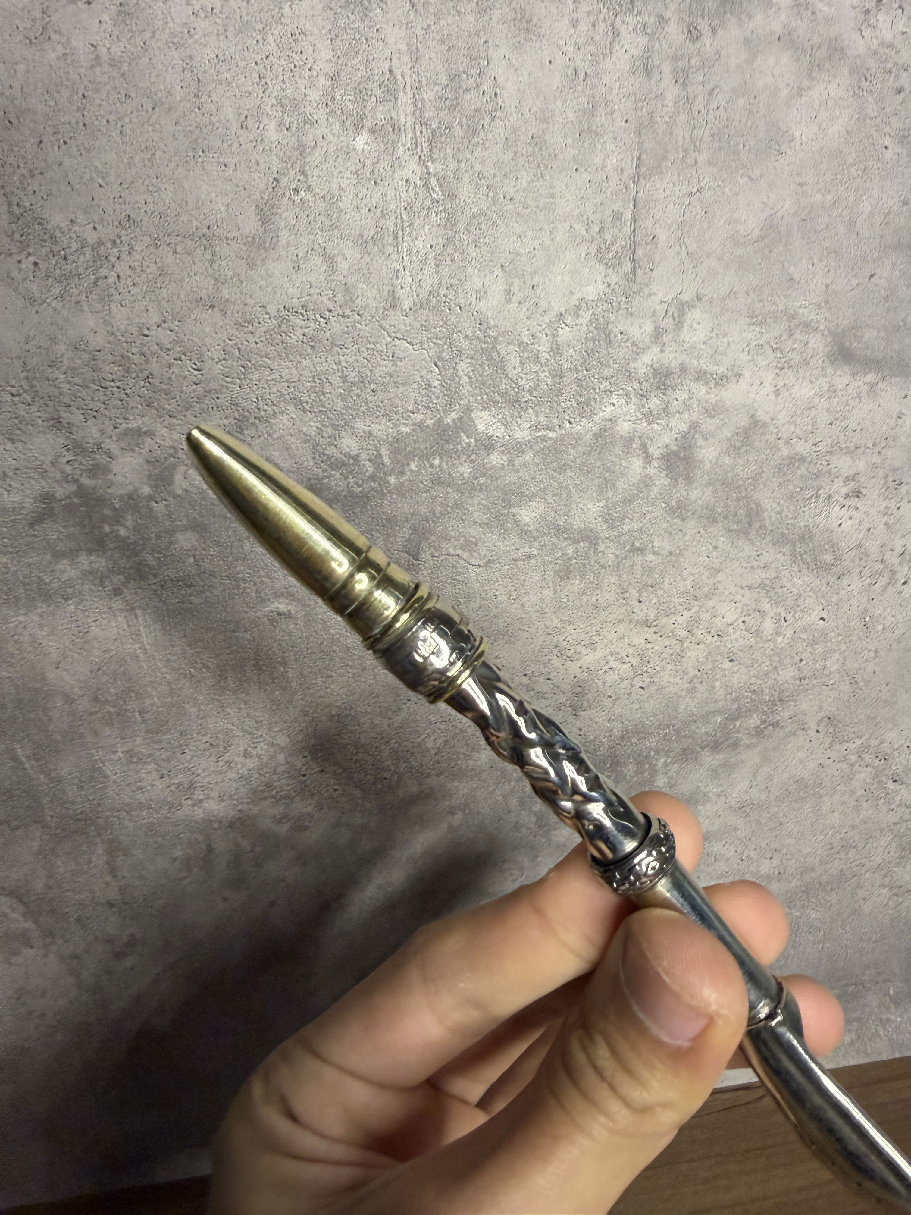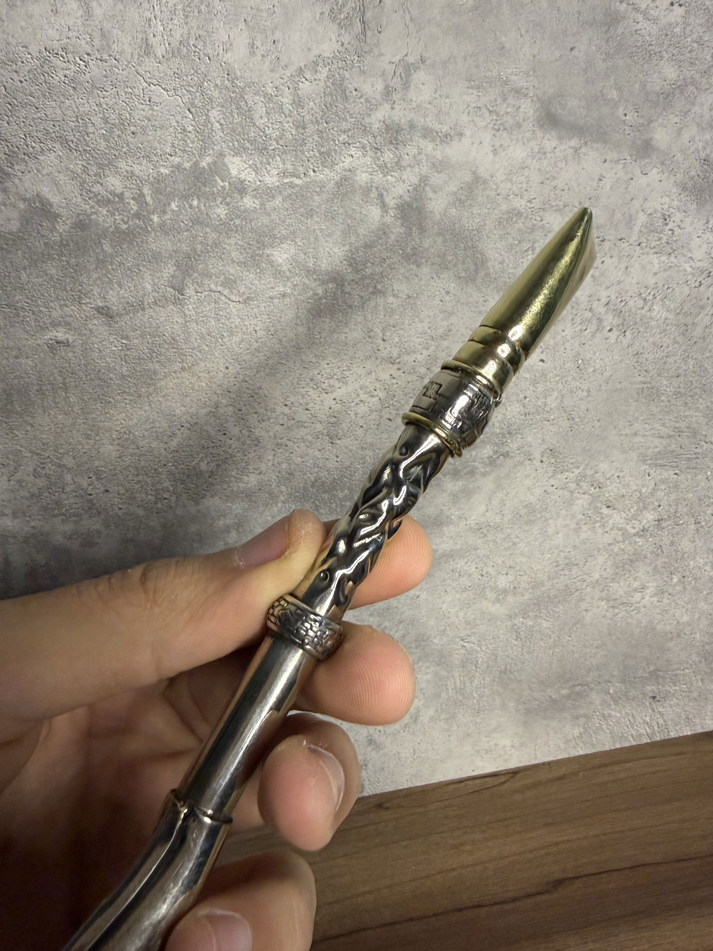 Bombillón Alpaca maciza Cincelado Artesanal, SEMI Curvo, Pico y detalles en Bronce.