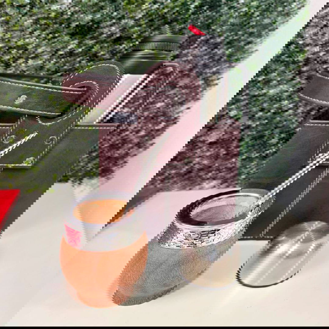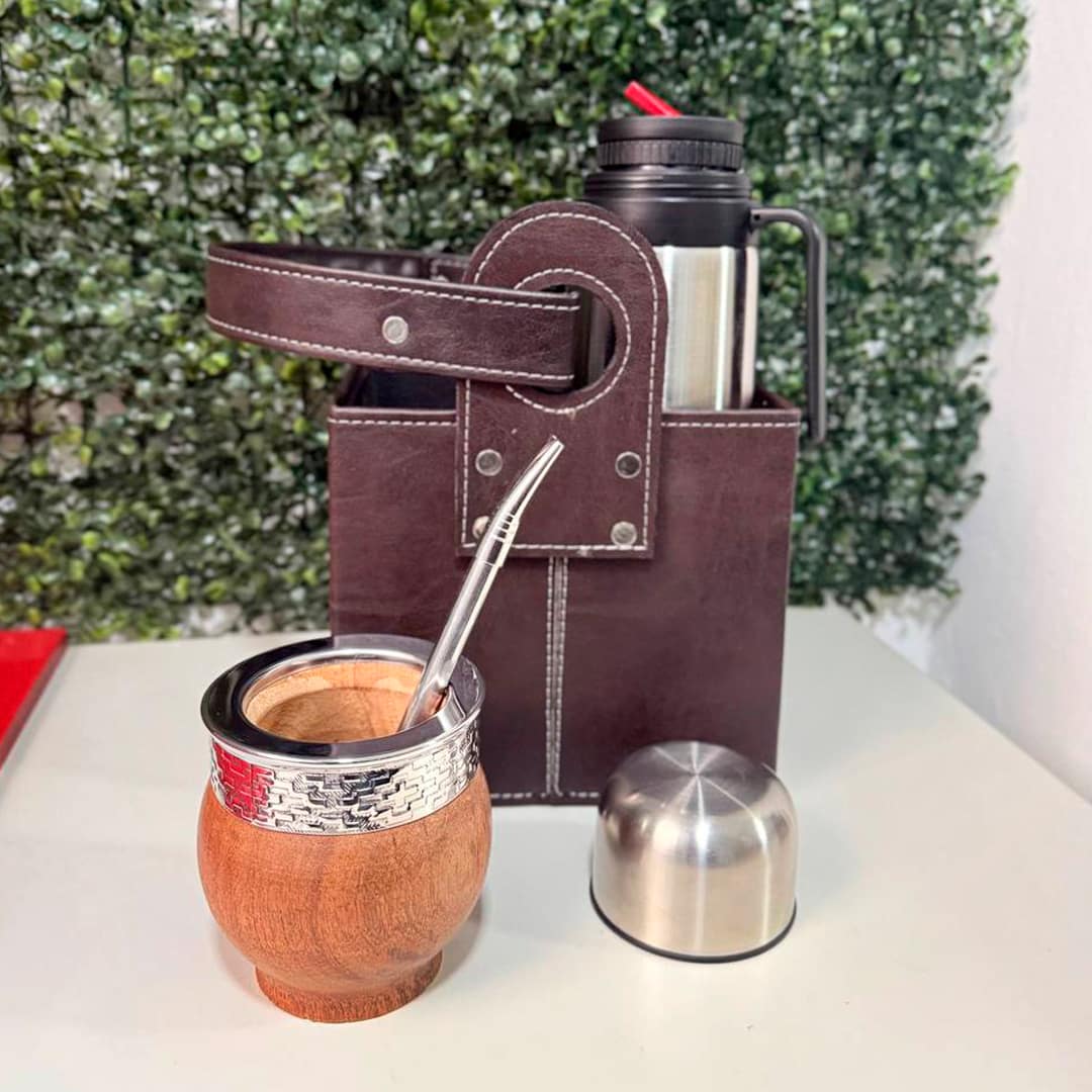 PROMO 18 - Mate Imperial ALGARROBO, Termo, Canasta + Bombilla SEMI Recta Acero de REGALO