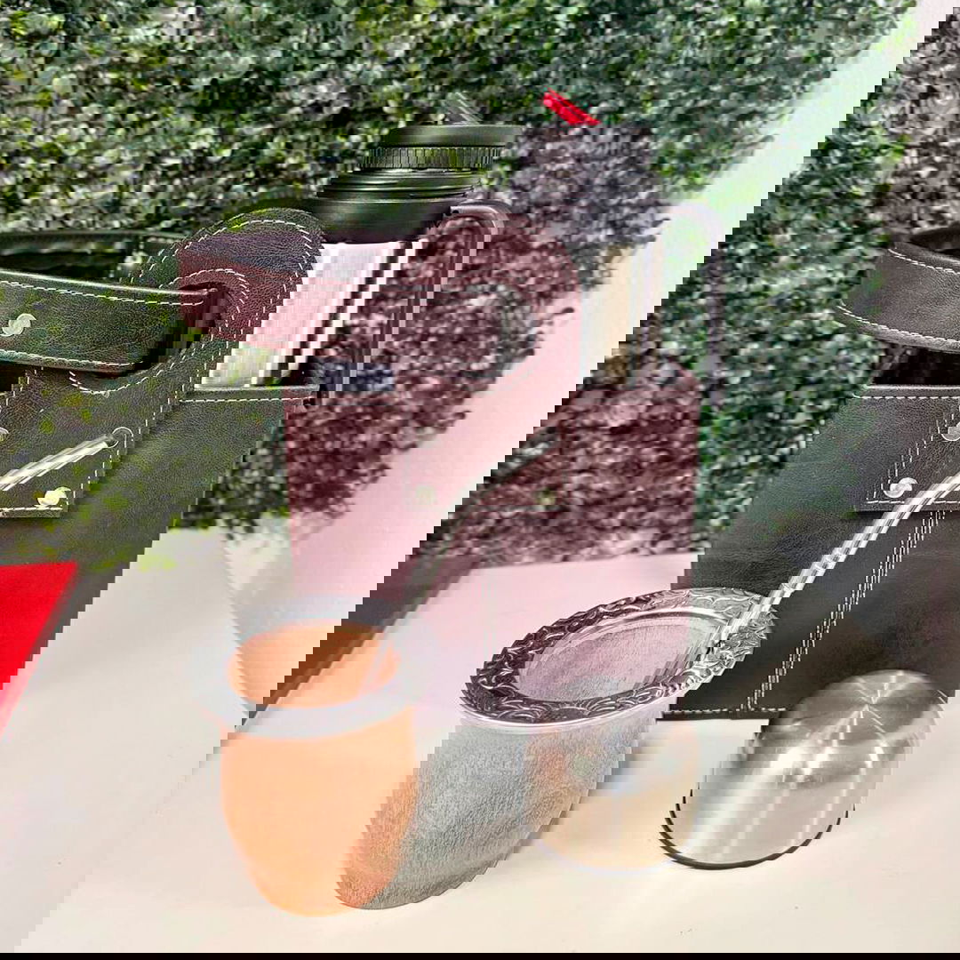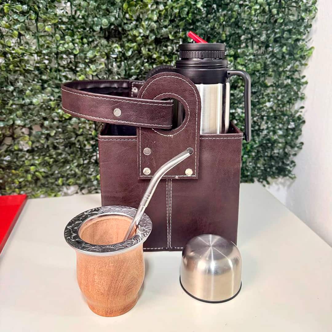 PROMO 20 - Mate Camionero ALGARROBO, Termo, Canasta + Bombilla Pico LORO Acero de REGALO