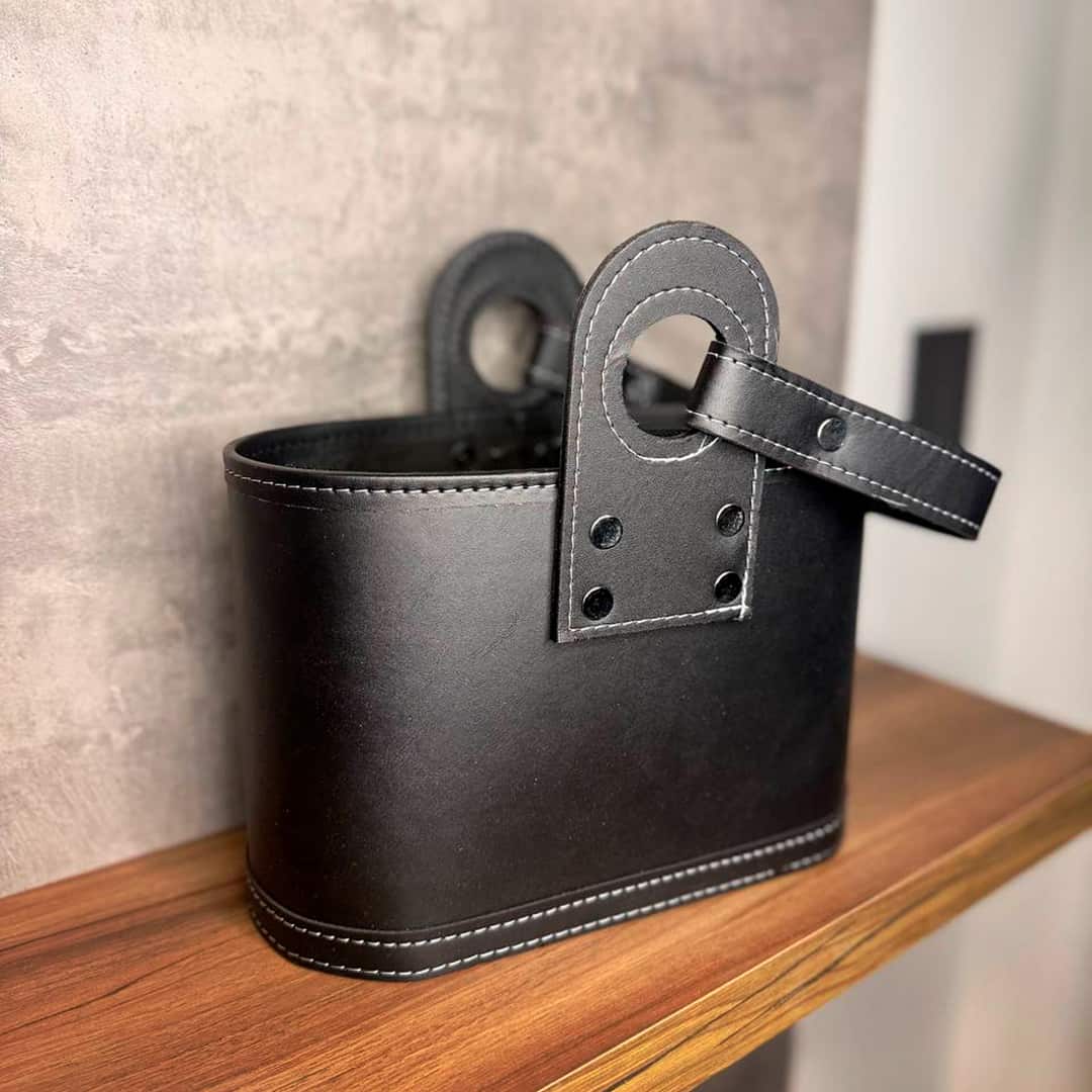 Canasta MATERA OVAL Premium, 100% CUERO, Dos espacios, Color Negro.