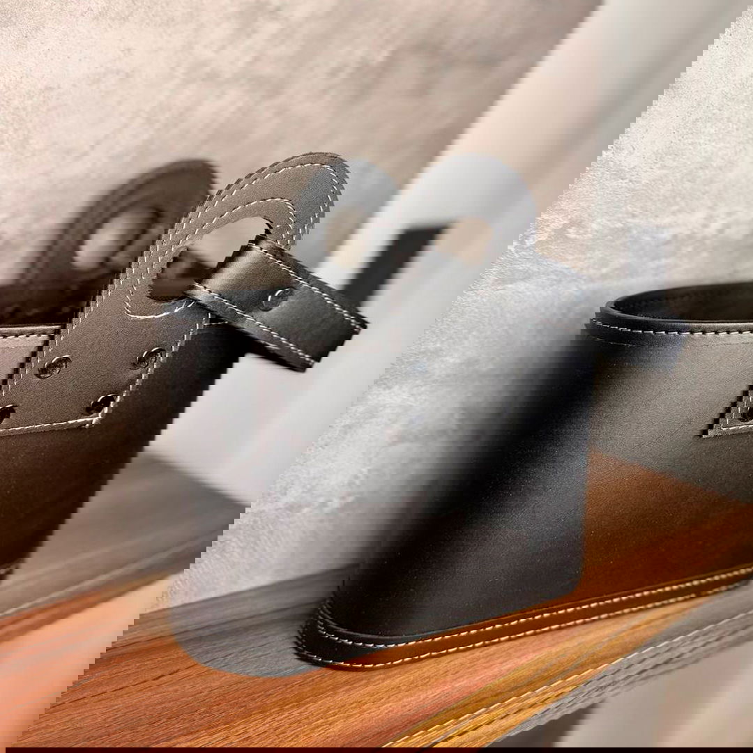 Canasta MATERA OVAL Premium, 100% CUERO, Dos espacios, Color Negro.