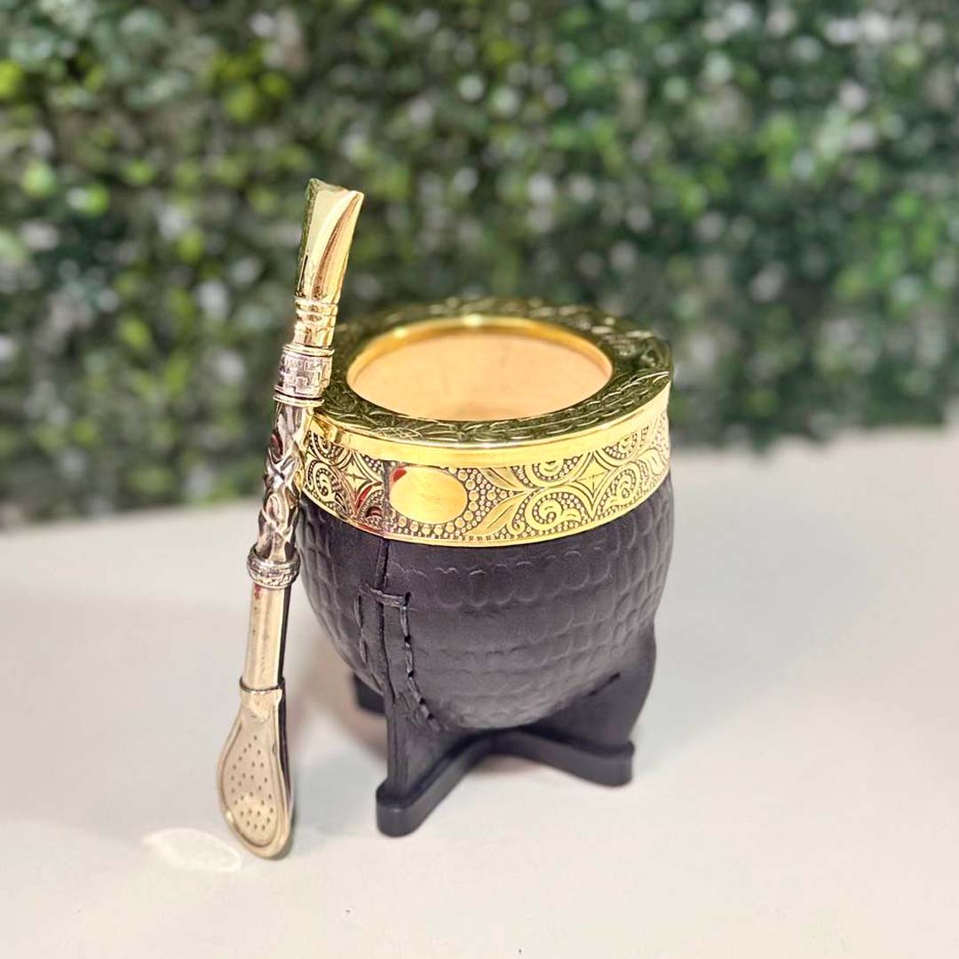- Mate Imperial PREMIUM de Calabaza, Virola bronce CINCELADA, Cuero CROCCO.