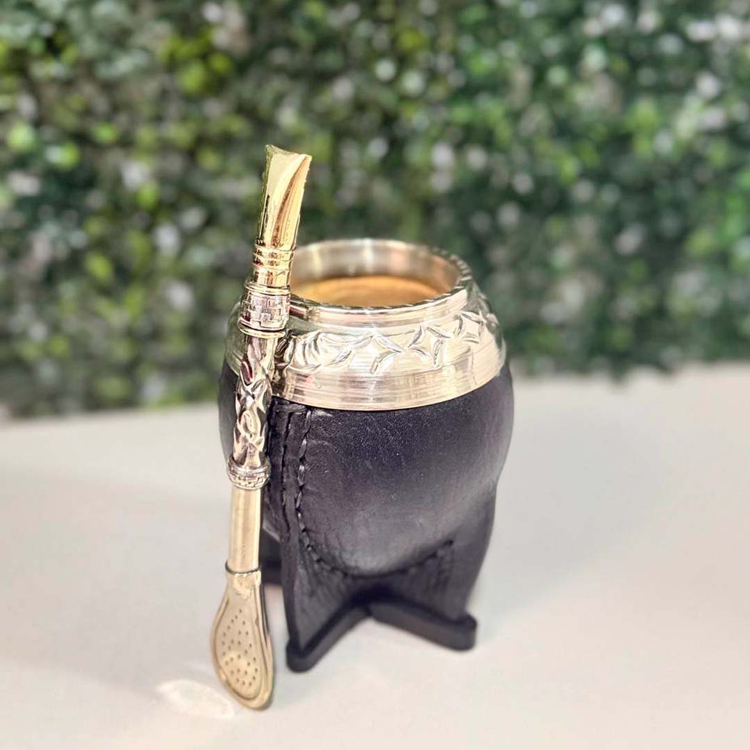 - Mate Torpedo PREMIUM de calabaza JOYERO, Virola Alpaca CINCELADA, Cuero LISO.