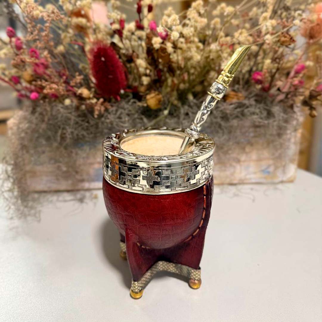 - Mate Imperial PREMIUM de calabaza, Virola Alpaca CINCELADA, Cuero CROCCO, Base REFORZADA Alpaca, Bolitas en Bronce.