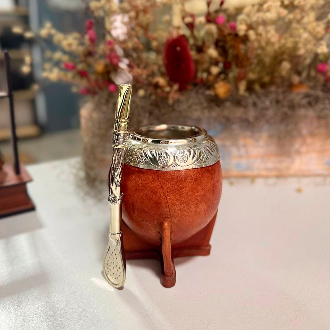 - Mate Torpedo EXCLUSIVO de Calabaza, Virola alpaca Cincelada LACRE Premium, Cuero LISO.