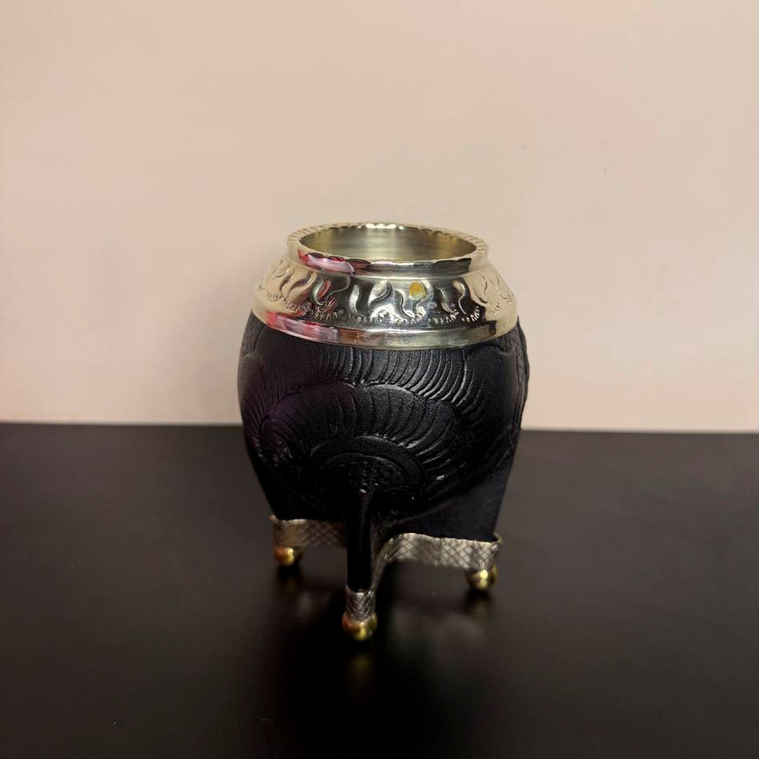 Mate Torpedo PREMIUM de calabaza, Virola Alpaca CINCELADA, Cuero TALLADO, Base REFORZADA Alpaca y bolitas en Bronce.