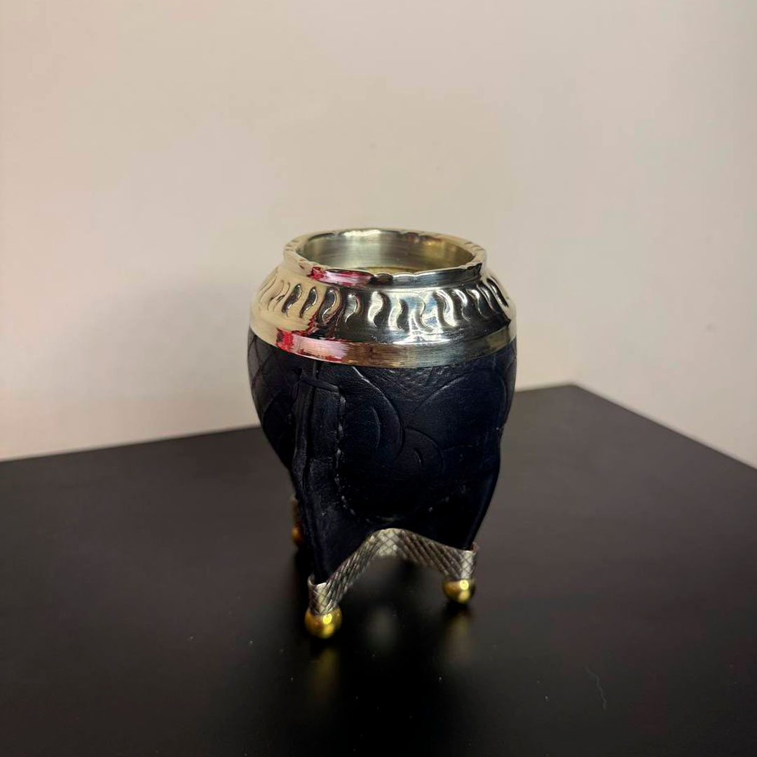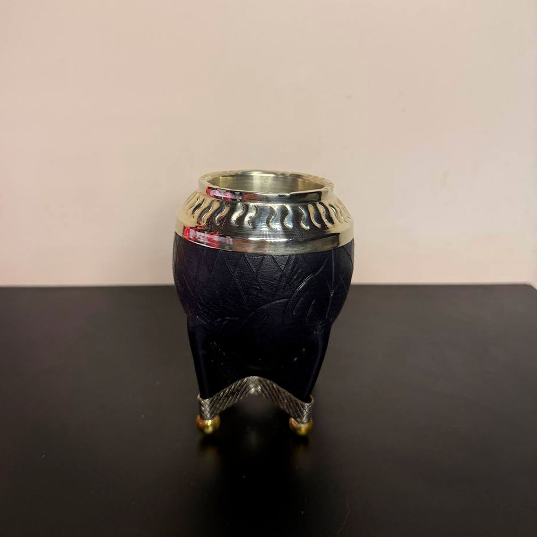 Mate Torpedo PREMIUM, Virola Alpaca, Cuero TALLADO, Base y Bolitas. - Modelo 5