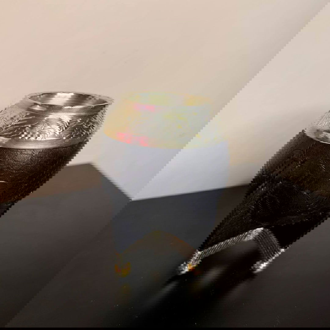 Mate Torpedo PREMIUM de calabaza, Virola Alpaca CINCELADA, Cuero TALLADO, Base REFORZADA Alpaca y bolitas en Bronce.
