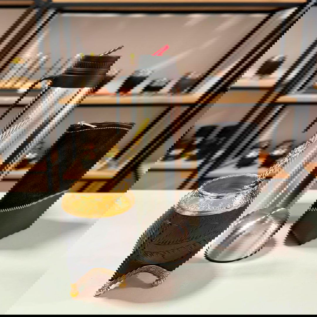 - Mate Torpedo EXCLUSIVO, Virola Bronce, Cuero LABRADO, Base Bronce