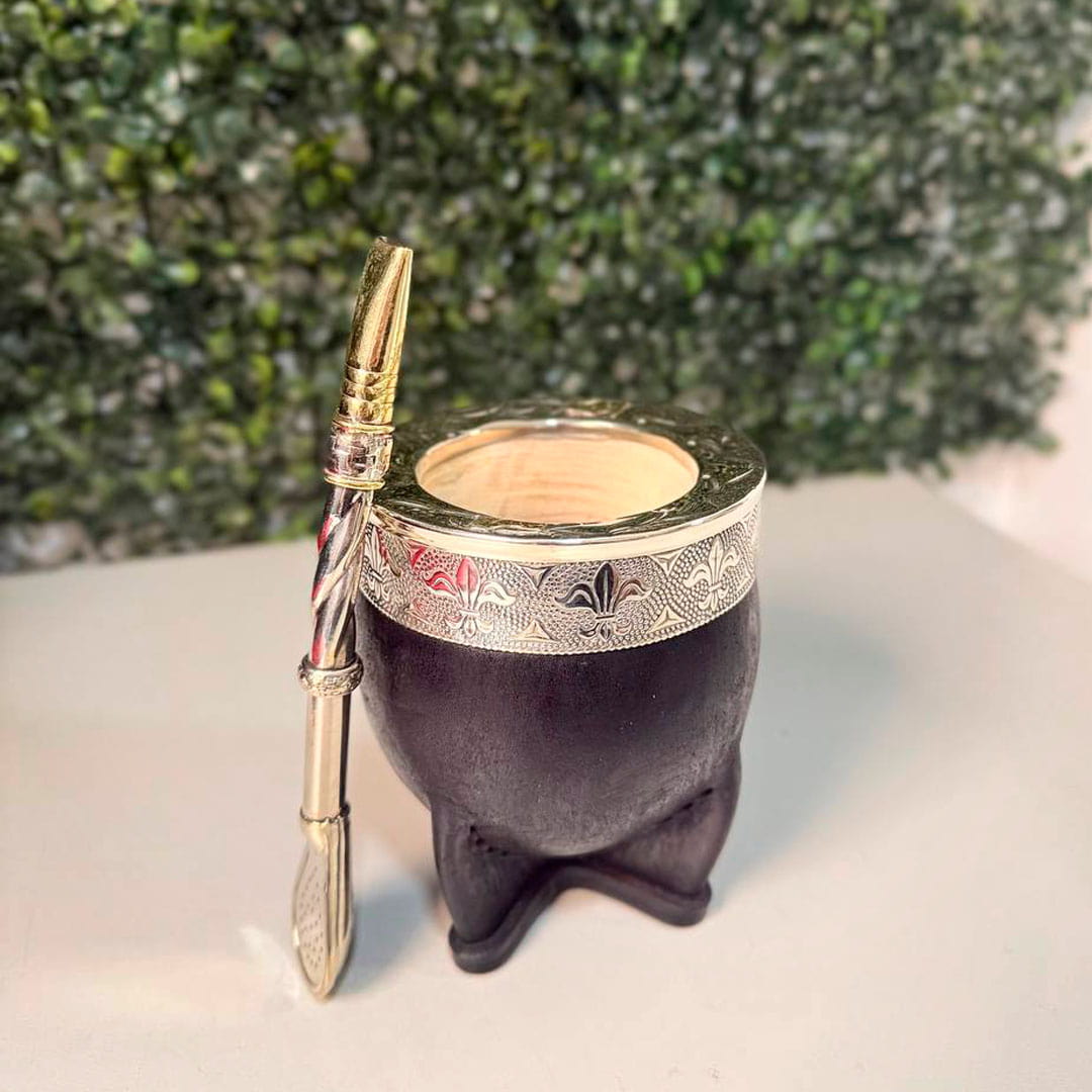 - Mate Imperial PREMIUM de Calabaza, Virola Alpaca Cincelada, Cuero Liso y Apliques en Bronce.