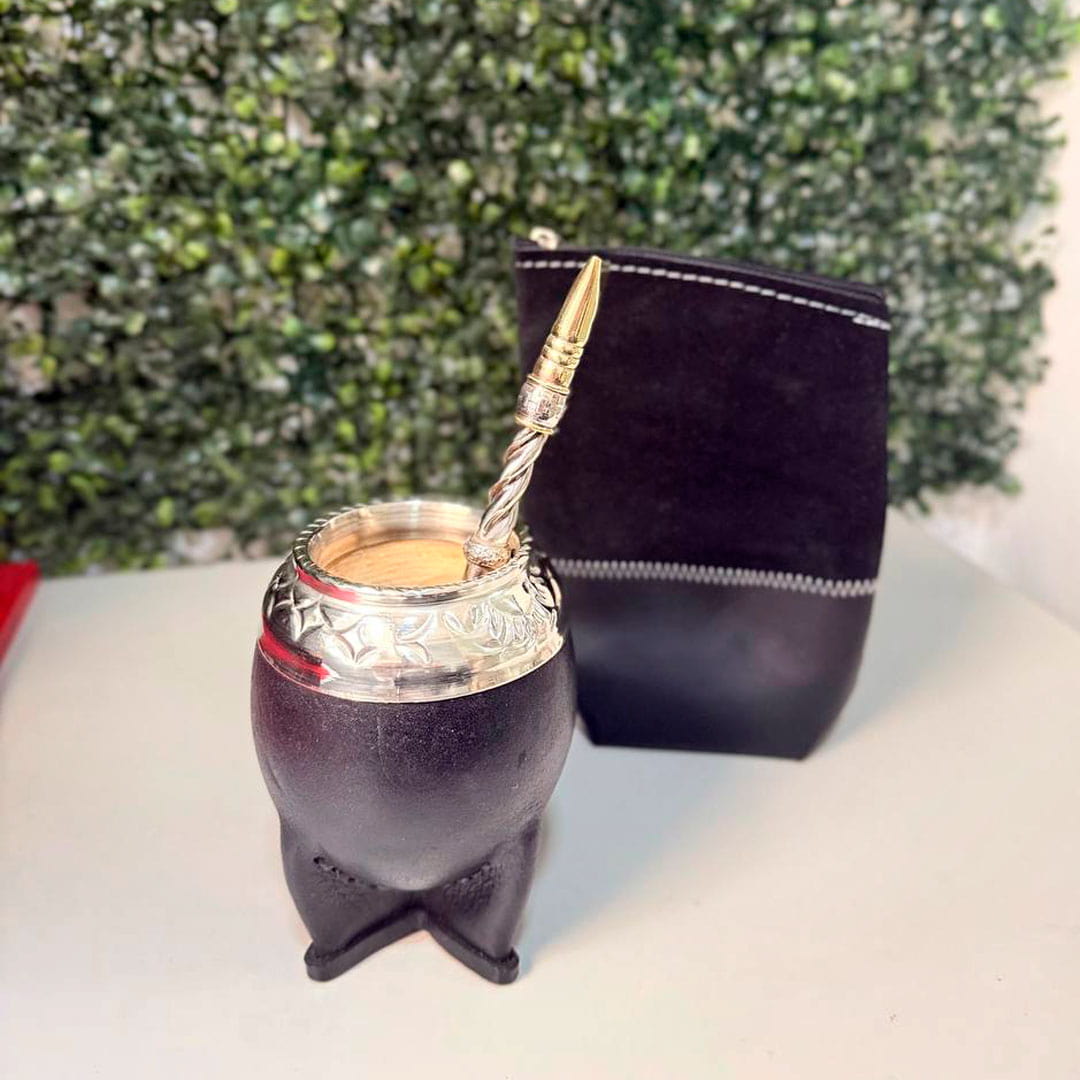 - Mate Torpedo PREMIUM de calabaza JOYERO, Virola Alpaca CINCELADA, Cuero LISO.